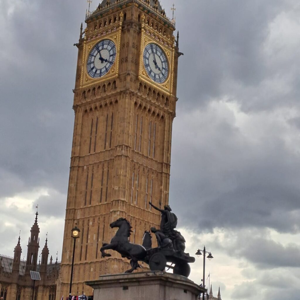 The next day, we had an appointment to visit the Madam Tussauds Museum. It was a very extravagant and fantastic experience. We saw many (मेणाचे पुतळे) wax statues of different celebrities from the whole world. There was a small taxi tour that presented us with a time-travel view of how London was built. Then two hours’ entertainment and all. Then the most famous Buckingham Palace and their Guard of Honour. In front of that, we visited ‘Hyde Park’, a 350-acre area containing fabulous lakes, thick greenery, and big trees. There are places for jogging, walking, playing cricket, drawing, painting, and relaxing in a chair. It is a very beautiful place. It was very close to our hotel. Then we visited the Victoria and Albert Museum, which is the world’s largest museum of applied arts, decorative arts, and design. It is where the legendary wagh nakh (tiger claws) of Chhatrapati Shivaji Maharaj are on display. Then we had a guided tour of Stonehenge Village; ancient rock structures are preserved in this place. In the evening, one of the Ayurvedic physician friends sponsored a treat of Indian food at the ‘Dhishoom’, a very famous pub with jazz music, a different experience. We had dinner at the English pub earlier, when we stayed in Reading. That was also an amazing experience.
